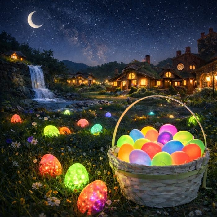As twilight settles in, the village transforms into an enchanted landscape filled with glowing eggs hidden throughout the Meadowlands. Families will explore together along the Waterfall Path, following the soft glow of the night as they search for colorful eggs and delightful surprises tucked among the natural scenery. Seeing the village illuminated after dark adds an extra layer of wonder to this playful Easter adventure in Knoxville.